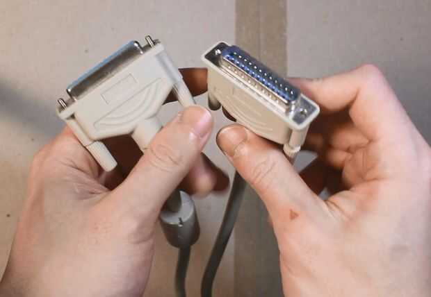 Aquí está el cable paralelo que va a utilizar, el extremo macho se conecta a la PC y el extremo hembra se conectará al chip.