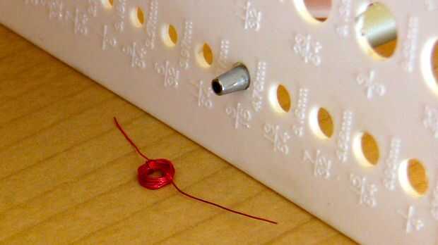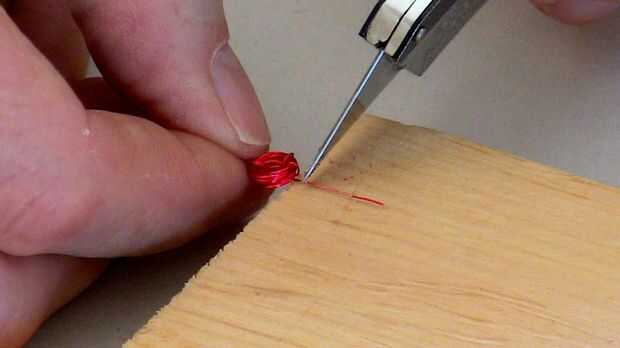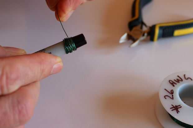 Un alambre de forma con una conicidad de la bobina funciona mejor. Utilicé un bolígrafo Sharpie para las bobinas medianas y grandes (dentro de diámetros de 1/4 y 3/8 pulgadas) y una más pequeño bola punto Punta del lápiz (3/16 de pulgada) de la bobina del motor pequeño. Una vez herida, unas vueltas de los extremos del cable hechos directamente uno frente a otro en la bobina es suficiente para estabilizar la bobina y crear árboles bastante rígidos.