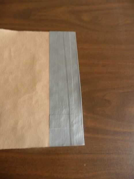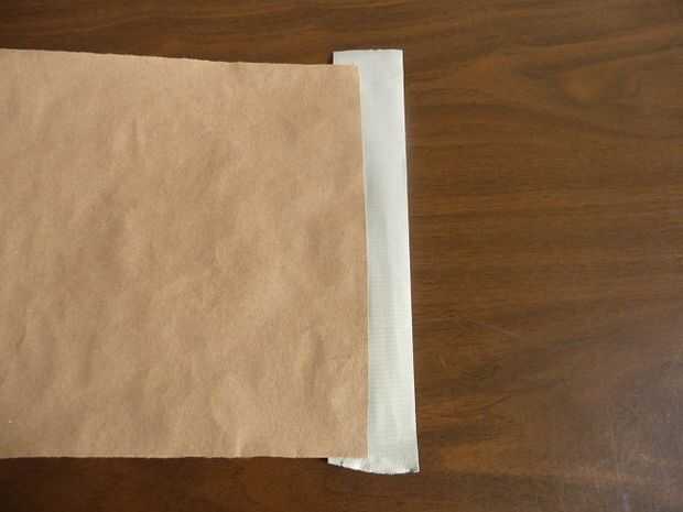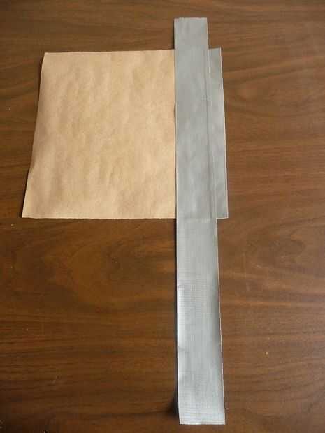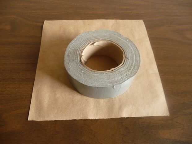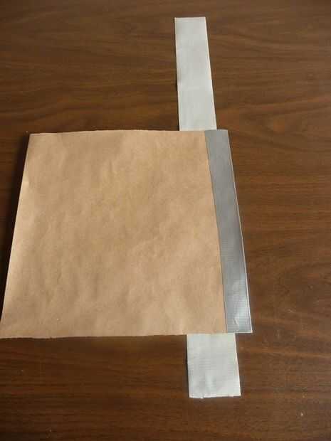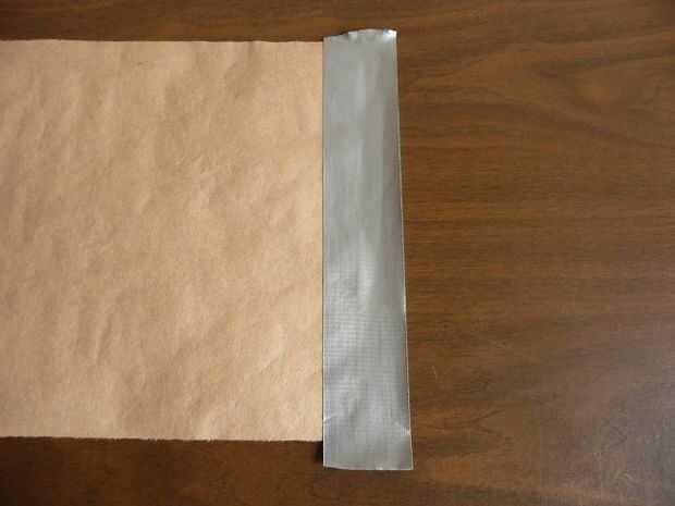 Comenzando en un extremo, aplique la cinta del conducto (la mitad de la anchura), en el papel.