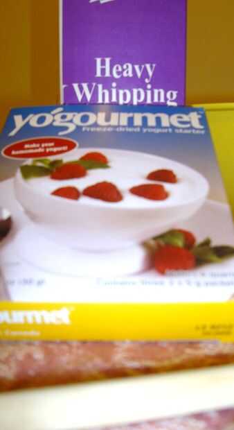Tuve mejores resultados estableciendo un paquete del arrancador de yogur y 2 tazas de crema de leche a temperatura ambiente.
