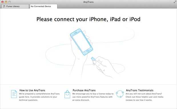Conecta tu iPhone a la computadora, y AnyTrans obtendrá su dispositivo y escaneo automático de los datos en el iPhone 6/6s.