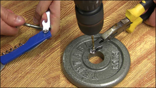 Retire el abrelatas y hacer agujeros más grandes por la perforación.