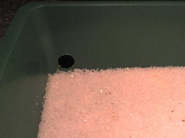 Entrada de la entrada del nido se ubicará en las proximidades de la central de la zona. Caerá directamente en el nido a través de una longitud corta de la tubería más grande. Crear un agujero para adaptarse a nuestra tubería más grande en la zona central. Bloquear el agujero temporalmente con algo por lo que no hay arena cae a través.
