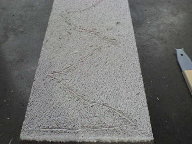 Toma tu destornillador y marque la ruta a través de la cara del material. Determinar lo que será la parte superior e inferior de la pieza.