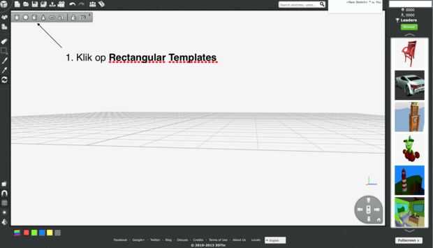 Vanuit de standaard instellingen staan de afmetingen ingesteld als volgt: 2 Lengte, Breedte 2, Hoogte 4.