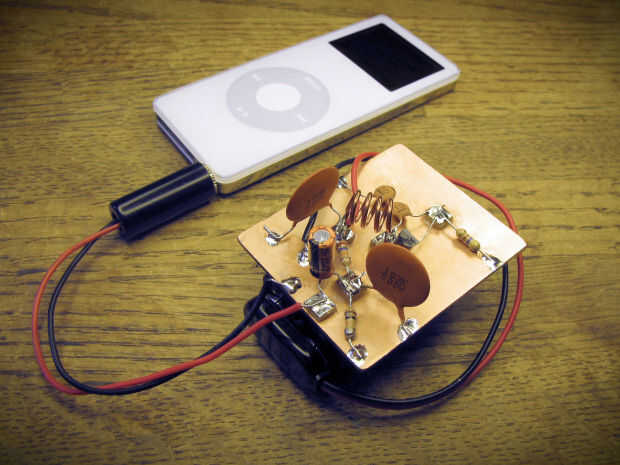 Transmisores de FM pueden ser complicados de construir, pero no este, este transmisor FM de iPod sobre la forma más fácil puede hacer. Y aunque la ciencia de la radio se entiende bien, hay una calidad mágica, emocional que a menudo no detienen para apreciar. No olvidará la primera vez que recoges una transmisión canal de un dispositivo que sueldan juntos, de unos trozos de cobre, carbón, plástico y alambre.