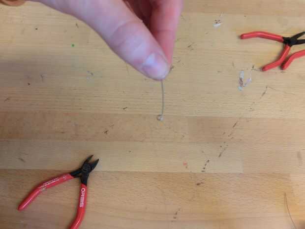 Comienzan a hacer el brazalete básico oído por redondeo de la punta para que el manguito del oído no picará a la oreja. Para esto Envuelva el extremo del alambre alrededor de la punta de los alicates de punta redonda.