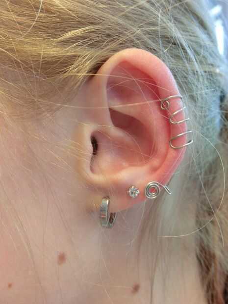 Se trata de un manguito del oído que se curva alrededor de la oreja y ha añadido una espiral poco a él. Este es el brazalete de oído básica con una extensión al final.