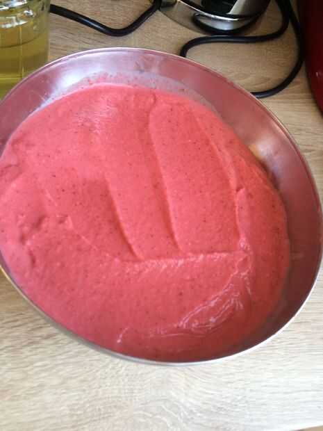 Una vez todo está mezclado y hay no hay trozos de izquierda, transferir todo a un recipiente grande. Para servirlo, o sellar y congelar durante un par de horas más.