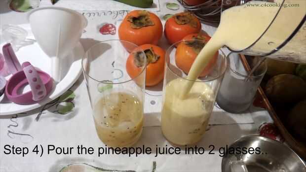 Paso 4) Vierta el puré de la piña en los vasos. (agregar agua si es necesario para llenar el vaso)