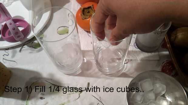 Paso 1) añadir algunos cubitos de hielo en los vasos