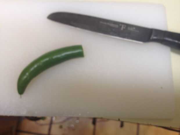 Esto encontrar el ají puede utilizar chile jalapeño o Serrano. Para uso picante una pimienta entera. Cuatro uso medio picante. Para mi propio no uso pimienta. Cuando hayas terminado añadir esto al bol para mezclar.