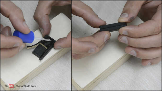 Pegar la pieza con un corte en la parte superior otro azulejo.