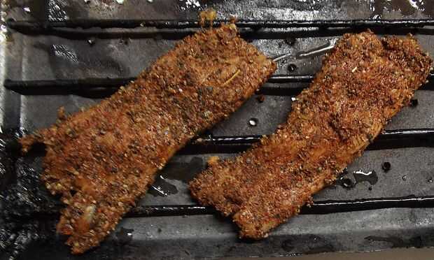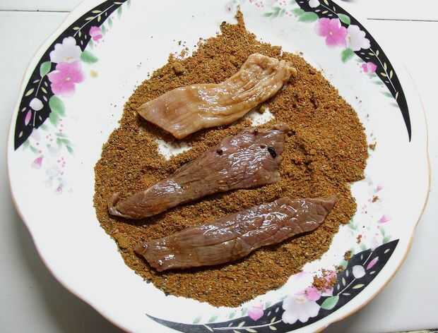 La carne es marinada, secarla con toallas de papel, y luego mezclar los ingredientes secos, que son: pimienta, comino, tomillo, pimentón y polvo de Chile, y luego untar la carne en esta mezcla, cubriéndolo completamente.