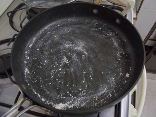 Lugar en el horno durante 30-40 minutos a ~ 370° F, hasta es un poco difícil. En este caso lo hice en una sartén, para mostrar que no siempre es necesario tener un horno. Colocar en la sartén con un poco de harina, la masa y cocer durante aproximadamente una hora a fuego medio, hasta que la masa esté dura.