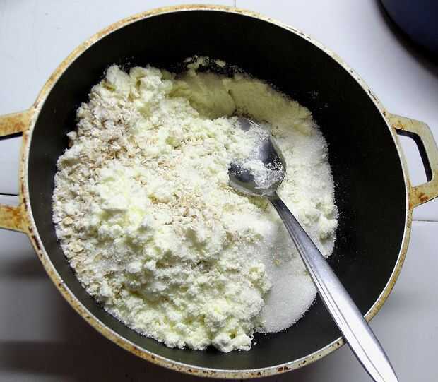 Mezclar la avena, leche en polvo y azúcar junto en un tazón grande.