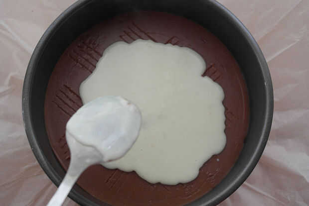 Continuar la preparación de la capa de chocolate negro. Para que una crema cucharada con 100 mililitros de la leche al calor, dejando los otros 100 aparte y que se disuelve la cuajada bien en asegurarse de que no hay grumos.