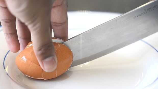Si usted quiere evitar pelar el otro huevo duro, luego solo agarra un cuchillo y corte derecho a través de ellos.