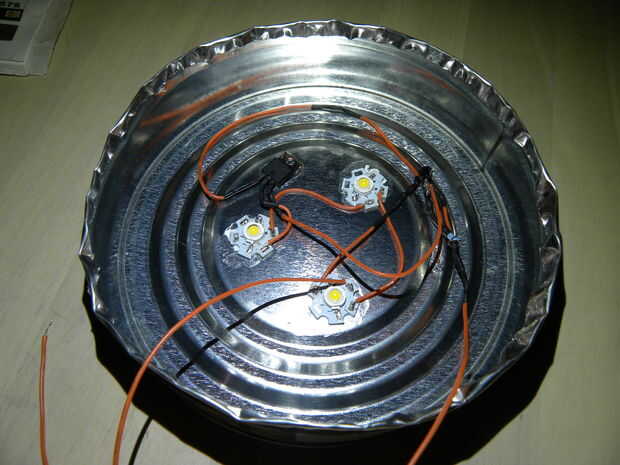 LED blanco tienen una tensión de aproximadamente 3.5V. Tres LEDs, la tensión de paso sería 10.5V y la fuente de alimentación debe ser de 12V. Si utilizas transformadores viejos, un transformador de 9V puede darle 12V cuando la corriente es baja.
