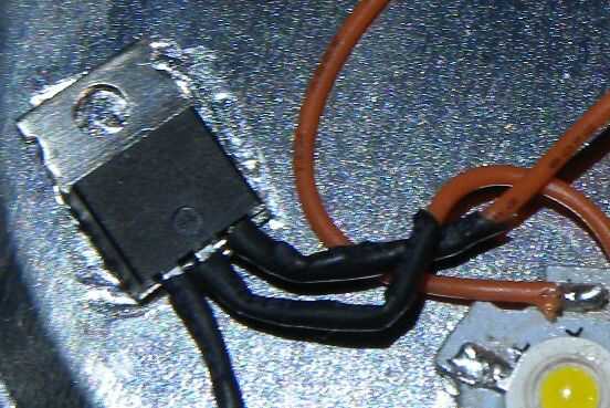 Estaba a punto de usar el regulador LM317 para reducir el número de piezas, pero la tensión de salida era demasiado alta. He utilizado el regulador de corriente del MOSFET en su lugar y fue capaz de construir sin una placa de circuito y utilizar tubo termo retráctil para sostener y aislar las partes. Epoxi se utilizó para pegar en la lata.