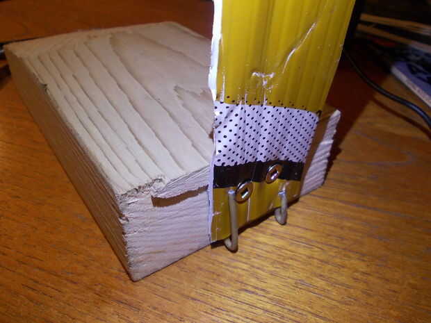 Encontrar un tablón de madera. Usé un 15cm por 9cm por tablón de 4 cm aquí. Para construir el soporte, atornille el tablero plástico sobre el lado de la tabla de madera. Al atornillar en una tarjeta plástica, es una buena idea utilizar las arandelas para evitar hundirse en.