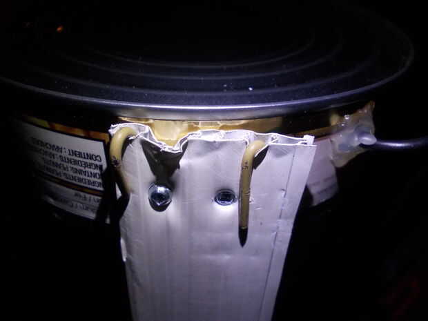 Puesto que la pieza de plástico es muy débil, debe estar apoyado con dos piezas de perchas de alambre en ambos lados, dejando espacio para los tornillos y tuercas. Esto le permitirá doblar para que la luz se dirige a donde usted quiere ser. Para una pieza de 30 cm, una suspensión suele ser suficiente. Usted tendrá a enderezar el soporte con una pinza y colocarlo a través de los agujeros de la Junta de plástico. Para cortar la percha, doblarla varias veces mientras lo sujeta con una pinza. Los extremos de cada pieza deben ser doblados para que no caigan.
