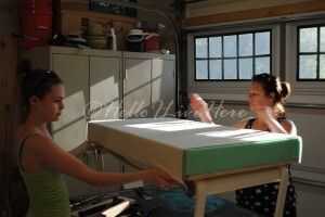 Luego se adhirieron 5 pulgadas-alta espuma de densidad compramos de tela de Joann que ½ precio (nos encanta una venta!).