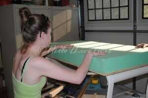 Paso 5: Se adhieren amortiguador de la espuma y la tela en la mesa de estructura de tabla
