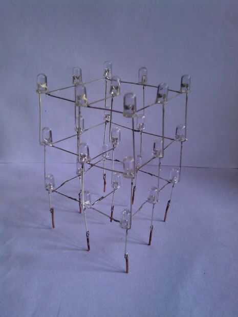 cubos LED son grandes por sí mismos sin embargo decidí condimentar con sincronización de beats de música. Se trata de un 3 x 3 x 3 cubo del LED con un PIC 16F84A funcionando a 4MHz.La detección de beat real se realiza en hardware por un amplificador