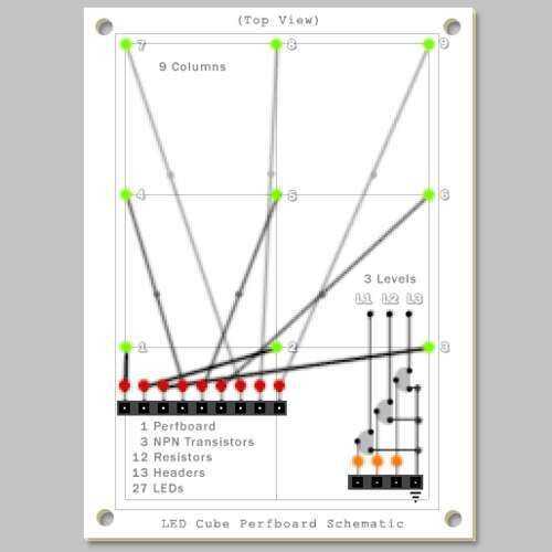 1. Horizontalmente, desea conectar 8 LEDs en cada capa, lo montan todos los negativos en un lazo (ver figura #1).