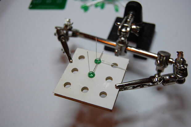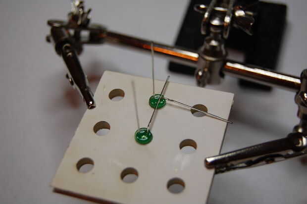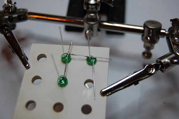 3) lugar el tercer LED en como se muestra. Soldarlos juntos.