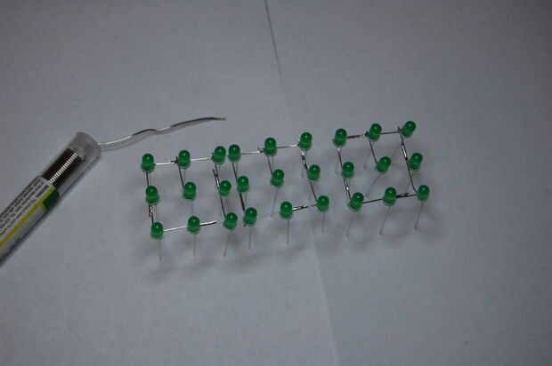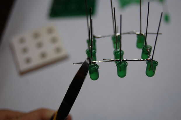 Antes de cortar el alambre extra. Tomar otra mirada para asegurarse de que todos sus LED va la forma correcta y se dobla hacia abajo el negativo (-) este es el momento de coger un error... siempre puede desoldar y arreglarlo.