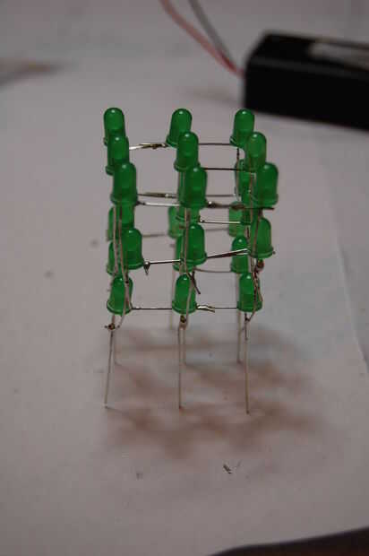 Esto es lo que usted debe tener al final. Este es el que mi mamá hizo... alittle torcido, pero eso es aceptable. Como la soldadura es buena el LED brillará todavía.
