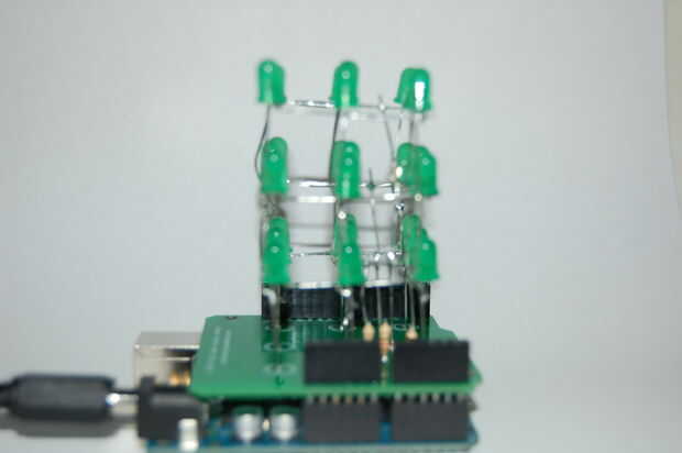 El cubo LED 3D es un dispositivo realmente fresco que le permite ver en tres dimensiones, haz alguna percepción de profundidad y tiene 512 LED o 512 píxeles. Está basado en un arduino uno que es un microcontrolador Atmel AVR en un tablero de desarrol