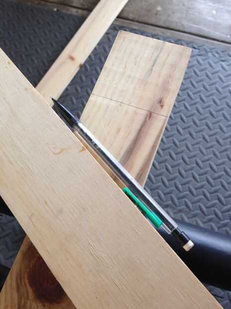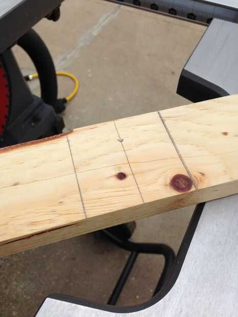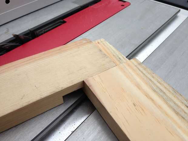 2. Para crear las juntas de vuelta puse la hoja de ranurar en mi sierra de mesa a exactamente la mitad del espesor de 1 x 3. Luego, utilizando un pedazo de chatarra 1 x 3, he marcado en cada uno de los tableros donde sacar la madera para las articulaciones.