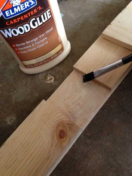 3. Extender una capa de pegamento para madera en las juntas de regazo. Usando un cepillo pequeño ayuda. Deslice las juntas juntos y añadir presión - pinzas, pesos, etc.. Limpie cualquier exceso de pegamento.
