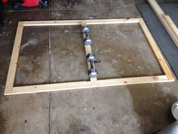 Dentro de marco exterior de la bandera es un marco interno que solía montar el indicador. Para esto hice algunas juntas de regazo con pino de 1 x 3. Esto no tiene que buscar bastante porque no ser visto, así que no dude en utilizar algunos restos de madera si ya lo tienes.