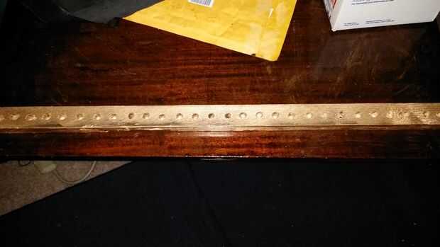 Perfore agujeros de 1,25 pulgadas de uno a 3/4 pulgada de profundidad. Deje 2 pulgadas en cada extremo para sujetarla a la pared.
