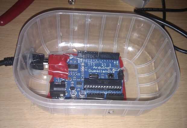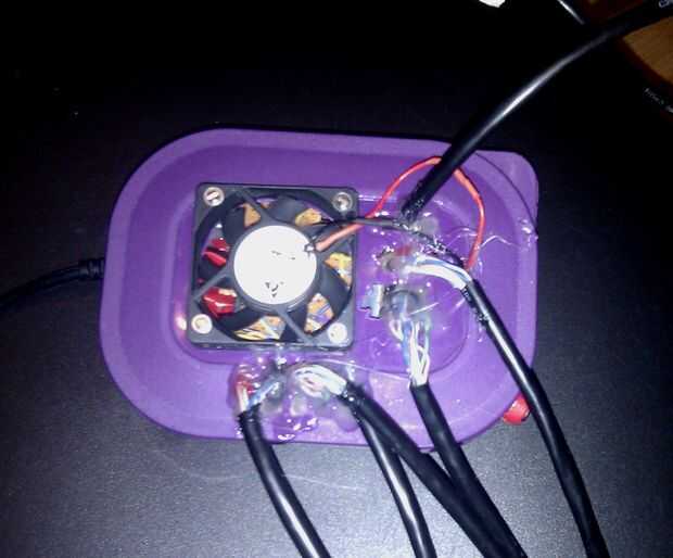 En vez de disipador térmico quería agregar algo más porque dentro de la carcasa de plástico cerrada todo lo tendría aún más. Tenía un pequeño 12V refrigerador poniendo todo en casa y había conectado a 12V directamente. El ventilador era demasiado rápido y demasiado fuerte en todo el tiempo que utilizo mi sistema. Así que lo conecté a 3.3V de arduino y que funciona muy bien. Es muy tranquilo y después agregué algunos agujeros a la caja el aire puede fluir a través de él.