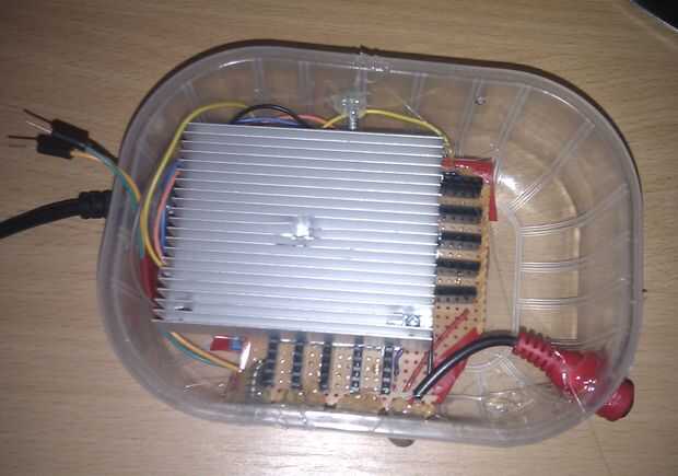Porque todos los dispositivos son sensibles todos ellos puse en un gabinete y fija con pegamento caliente. Porque el recinto era demasiado apretado para el disipador de calor grande me lo quitaron.