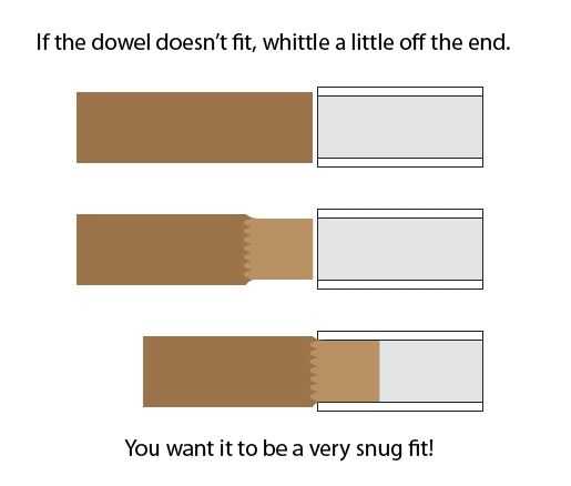 Los tacos no caben absolutamente en los acoplamientos. Tomar la navaja o boxcutter y gradualmente la espiga hacia abajo hasta que ya puede ser atascado en el acoplamiento. NO QUIERE QUE SER FLOJO. Debe tienes que trabajar un poco para llegar allí, golpeando con el martillo o en un piso de acera o cemento.