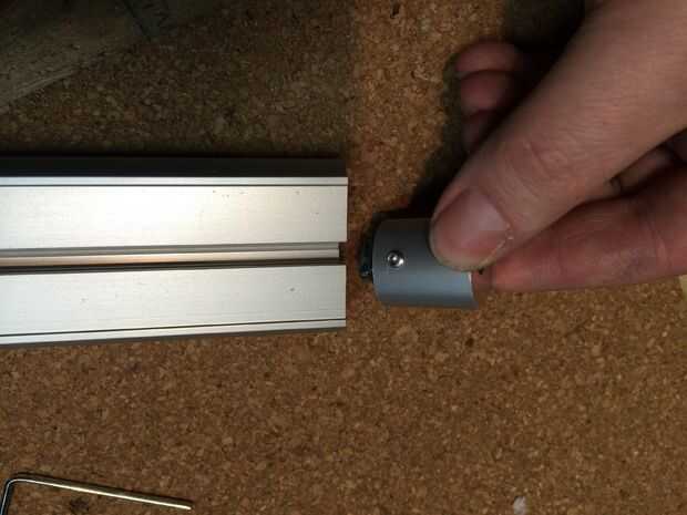 Empezamos con los accesorios del techo KVARTAL. Primero quite el tornillo con la llave allen suministrada y desmontar. Toma ahora el agujero con la 1/4 20 toque en el lado opuesto del tornillo, afortunadamente este orificio es casi el tamaño perfecto para este sensor. Ahora, vuelva a montar el aparato, retirar una tapa plástica del carril de cortina KVARTAL Triple y deslice al apartato sobre, ajuste el tornillo para fijarlo en su lugar, repita esto para los otros aparatos. dejar el tapón plástico por ahora, esto es como el carro va en el carril.