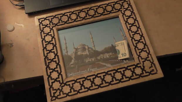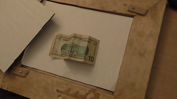 Sólo hay que poner un billete de dólar de plano, no doblado entre el cuadro y la tapa trasera. Luego vuelva a montar el marco y colgar en la pared.
