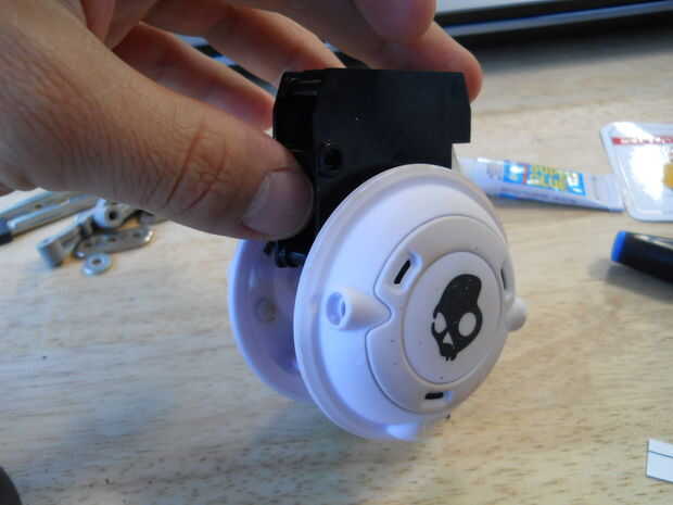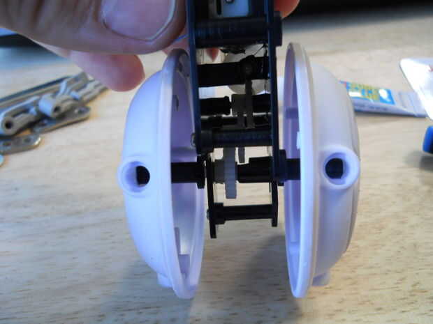até cada rueda en cada extremo del eje, a continuación, fijé con superglue. Tuve que ser muy cuidadosos de no pegar las ruedas al cuerpo principal.