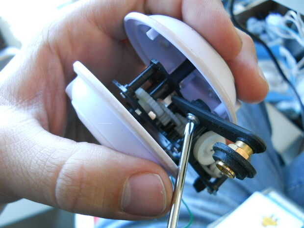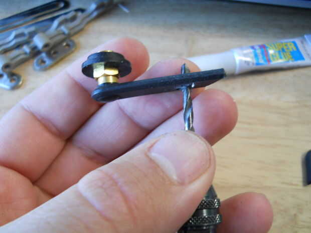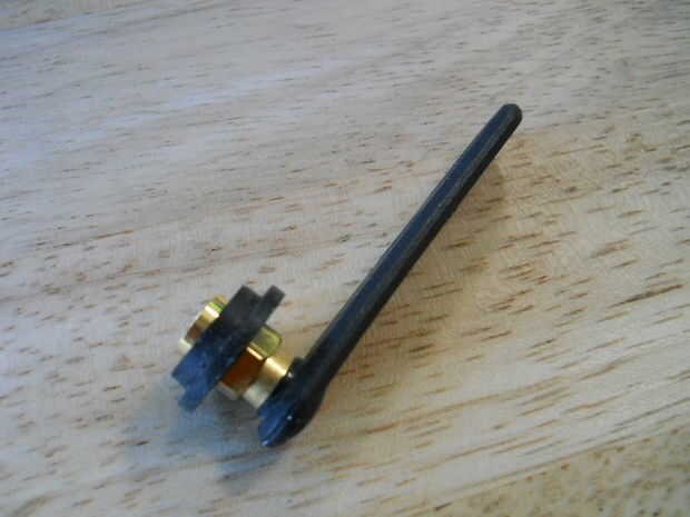 hice la rueda trasera (para estabilidad) con la antena del router y la arandela de goma. Sólo inserta la arandela de la parte móvil de la antena, y entonces até el otro extremo al cuerpo.