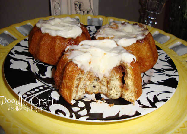 Rollos de canela... misma receta, sólo el rodillo la masa plana. Brown, canela y mantequilla de extensión azúcar todo sobre ella y luego la enrolle en un tubo largo. Corte el tubo en trozos de 2 pulgadas. Colocar en hoja o en subida y bundt pan y hornear igual como los rollos! Superior con escarcha!