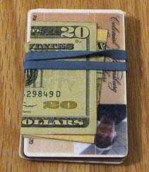 ¿# 29 cartera reemplazo es cartera abultada siempre de su bolsillo del pantalón? Deshacerse de él. En cambio, envuelva su dinero alrededor de su identificación y tarjeta de crédito y luego envuelve una banda elástica alrededor del exterior de la caja.