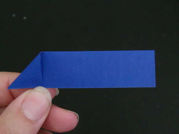 6. doblar la tira a la derecha hasta la línea con el borde de la esquina que apenas fue doblado.