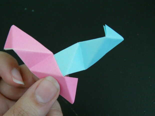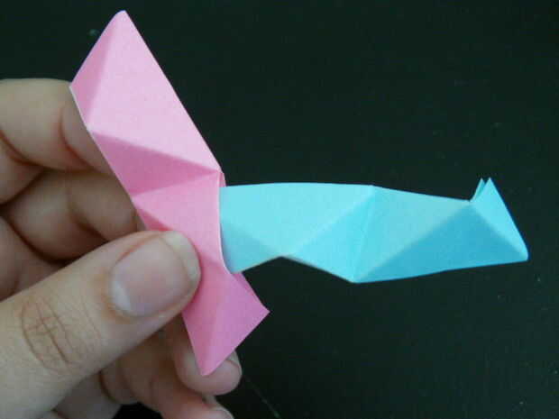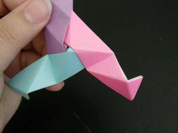 Una vez que la pieza 3 ha sido metido en la pieza 2, el bolsillo en la pieza 3 necesitará abrir así que 1 pieza y meterse dentro, como se muestra en la imagen séptima.