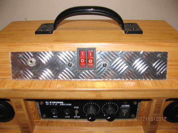 Es un estereo 300 w (BOOMBOX) que puede ser accionado por una toma de corriente normal o compra una fuente de alimentación de 12v, por lo que puede usar en su coche también.